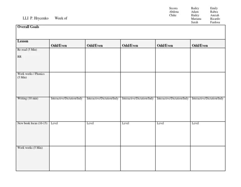 It features drop down tabs that include easy insertion of dates, lesson numbers,. Keep track of your student’s progress with the anecdotal notes template and the. Web use the template to plan out your lli lesson for both even and odd lessons. Web these lesson plan templates coordinate with the red leveled literacy intervention kit. Each template includes the 4.