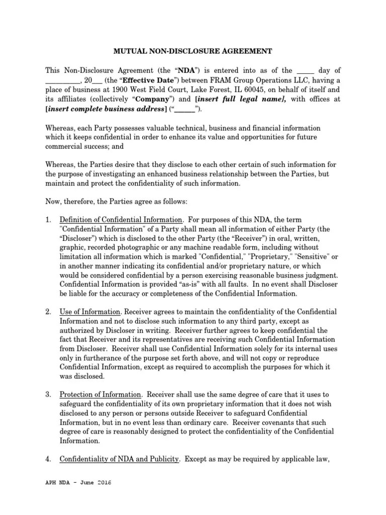 APH Mutual NDA Template V1 PDF Non Disclosure Agreement
