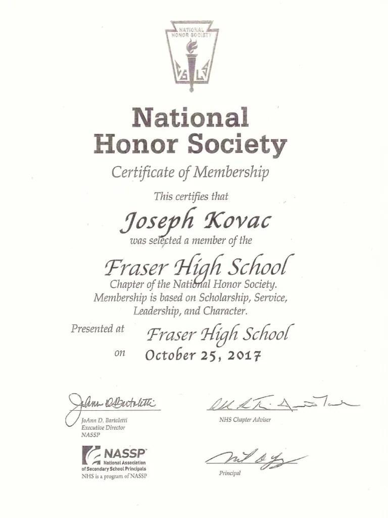 National Honor Society Certificate Template