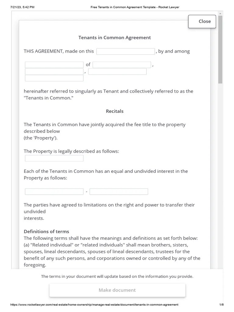 Free Tenants in Common Agreement Template Rocket Lawyer PDF