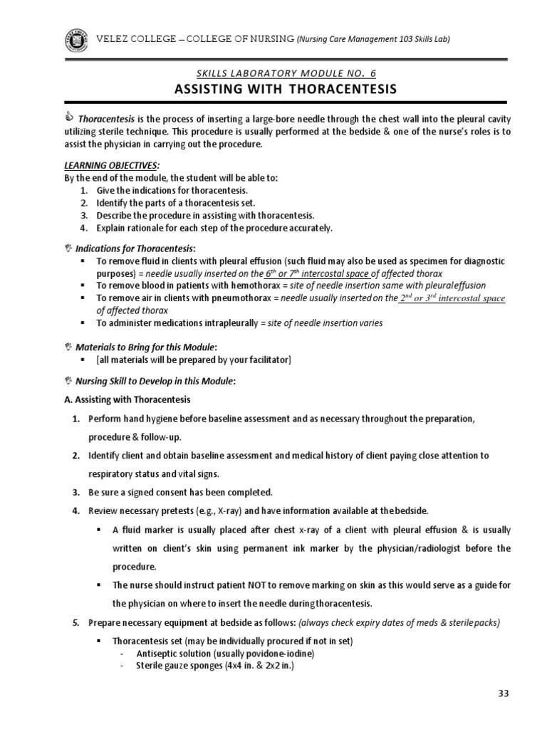 Assisting With Thoracentesis Skills Laboratory Module No. 6 PDF